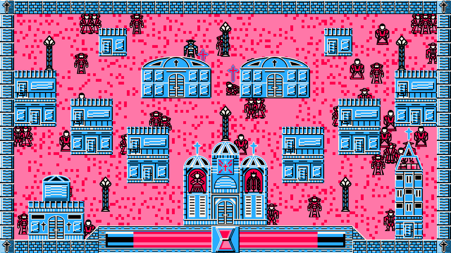 A small town run by a religious sect in Mexico unknowingly released a dangerous demonic entity that jumps from body to body. The town is walled, so it will take some time for the entity to escape. You must take advantage of this, because if it escapes, it is impossible to know how much damage it will cause. Good luck.
